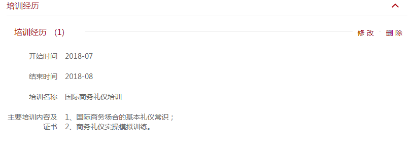 培訓(xùn)經(jīng)歷一般會(huì)有字?jǐn)?shù)要求,一般都是100字以?xún)?nèi)。所以這時(shí)候?qū)τ谂嘤?xùn)經(jīng)歷描述就要少而精了。培訓(xùn)經(jīng)歷中最關(guān)鍵部分莫過(guò)于培訓(xùn)內(nèi)容,但這里也不是真正要問(wèn)有何培訓(xùn)內(nèi)容,而是想問(wèn)的是經(jīng)過(guò)培訓(xùn)掌握的技能。例如銀行崗前培訓(xùn),這里的培訓(xùn)內(nèi)容就應(yīng)該是商務(wù)禮儀、快速點(diǎn)鈔、柜臺(tái)操作......然后加上掌握程度即可。