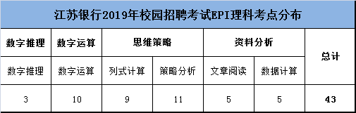 江蘇銀行筆試EPI考試模塊為:言語(yǔ)理解、數(shù)字運(yùn)算、邏輯推理、思維策略和資料分析。