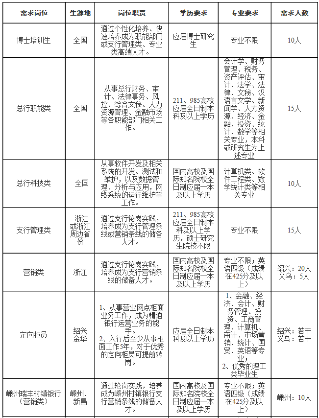 。2)應聘者只能報考一個崗位,專業要求為主修專業;國內高校畢業生應能在2019年8月底之前取得畢業證、學位證、報到證;國外院校歸國留學生應在2018年9月-2019年8月取得畢業證書,并能在2019年12月31日之前取得國家教育部的學歷學位認證;