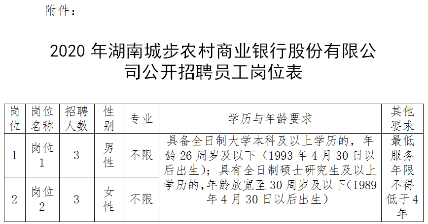 附件:《2020年湖南城步農村商業銀行股份有限公司公開招聘員工崗位表》