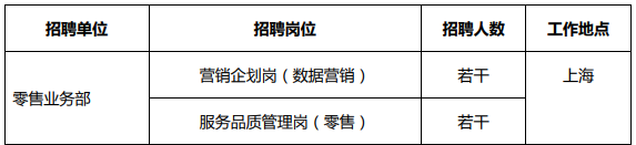 應聘條件:30 周歲以下;經濟類、市場營銷類等相關專業全日制本科及以上學歷;2年以上相關工作經驗;具有較強的業務分析、溝通協調、業務創新及文字表達能力。