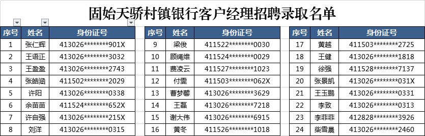 [河南]2020年固始天驕村鎮銀行客戶經理、科技人員招聘錄取通知