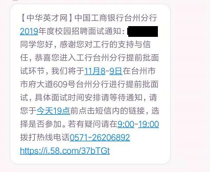 [浙江]2019年中國工商銀行臺州分行校園招聘面試通知