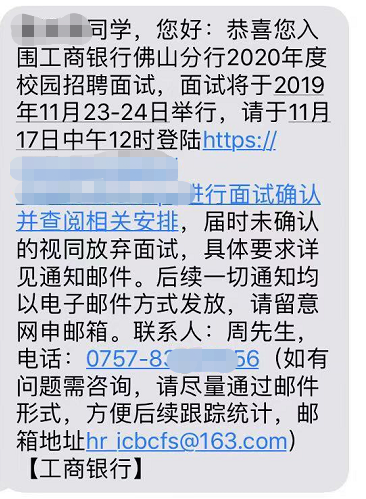 [廣東]2020中國工商銀行佛山分行校園招聘面試通知