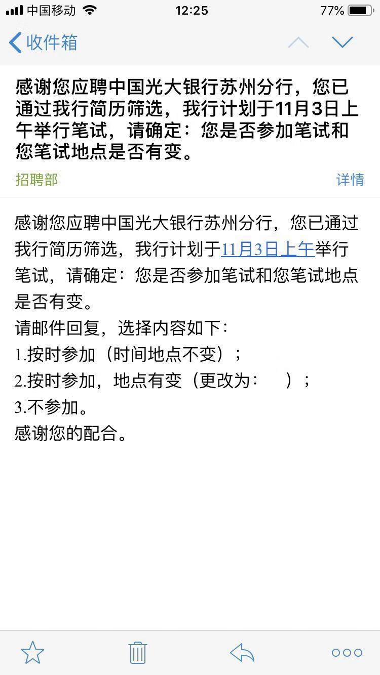 [江蘇]2019年光大銀行蘇州分行校園招聘筆試通知