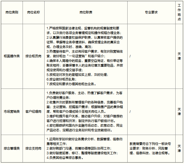 (十)具有良好的道德品質,身體健康,具備較強的工作能力和奉獻精神,責任意識強,具有良好的綜合素質和團隊協作精神。能夠熟練使用計算機操作系統和常用的辦公軟件,愿意從銀行基礎崗位做起,心態平和、樂觀向上。