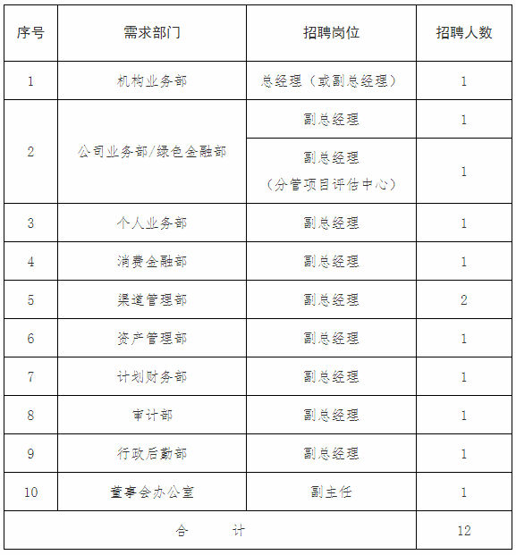 為進一步加強干部隊伍建設,更好地為全行業務發展和經營管理提供人才支持,現面向行內、行外誠聘總行相關部門負責人及分行班子成員等崗位管理人才。