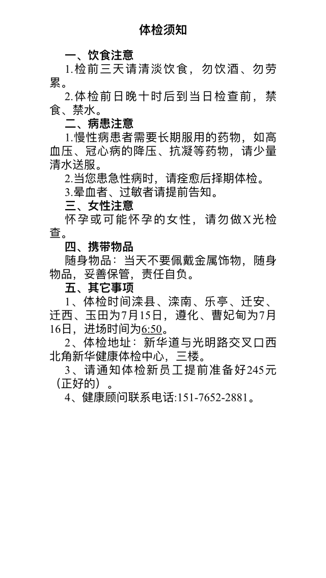 2016年河北唐山農村信用社招聘體檢時間及體檢須知