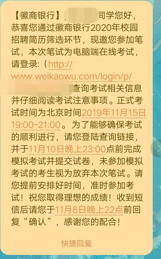 2020年徽商銀行校園招聘筆試通知