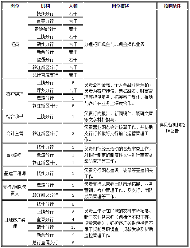 4.原則上江西省內分行(除贛江新區分行外)戶籍要求為機構所在市區及下轄縣域(以戶口本為準)或配偶為機構所在市區及下轄縣域戶籍(請提供相關證明),或畢業于機構所在當地院校且持續在當地工作(請提供相關證明);總行直屬支行戶籍要求為九江下轄縣域(以戶口本為準)或配偶為九江下轄縣域戶籍(請提供相關證明);贛江新區分行本地戶口優先;具有較強穩定性。