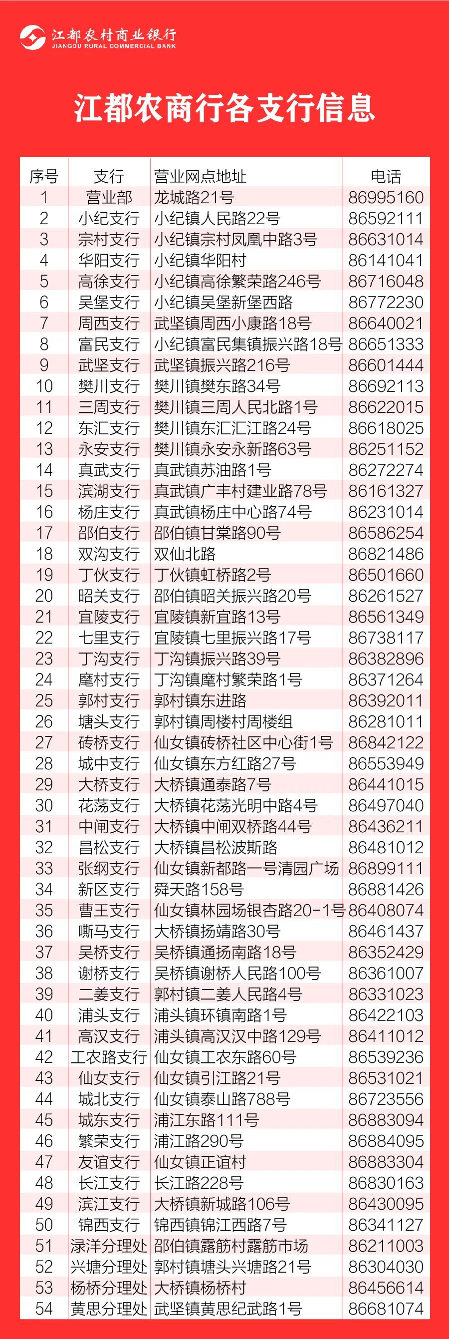 江都農(nóng)商銀行各支行網(wǎng)點(diǎn)信息