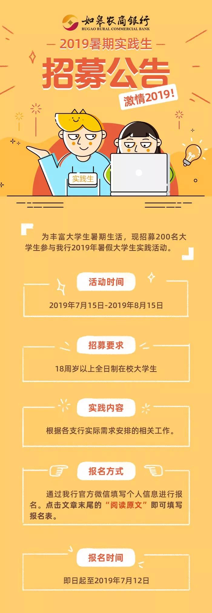 [江蘇]2019年如皋農商銀行暑期實踐招聘公告