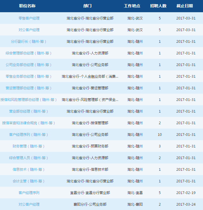 2017年交通銀行湖北分行招聘啟事已在銀行招聘網發布,詳情如下: