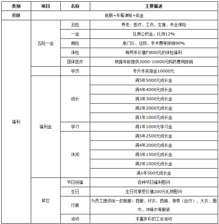 1、培訓:為期一周的新員工入職培訓,課堂學習、拓展體驗、通關演練、e校園、讀書活動、教育資助等;隨著職級的提升,均配備專業的培訓課程和訓練;