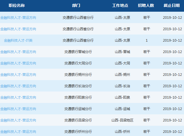 主頁 > 國家銀行招聘 > 交通銀行招聘 > [山西]2020交通銀行山西省分行校園招聘公告