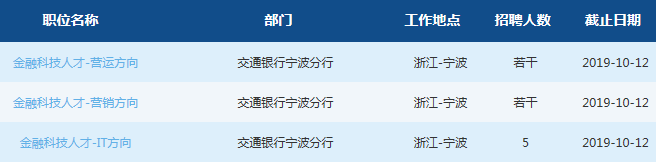 (6) 對于財會類、管理類、語言類等非金融科技專業(yè)的本科應(yīng)屆畢業(yè)生,原則上安排參加“2020年交通銀行雛鷹計劃”人才培養(yǎng)項目(赴金融服務(wù)中心培養(yǎng)鍛煉一年)。