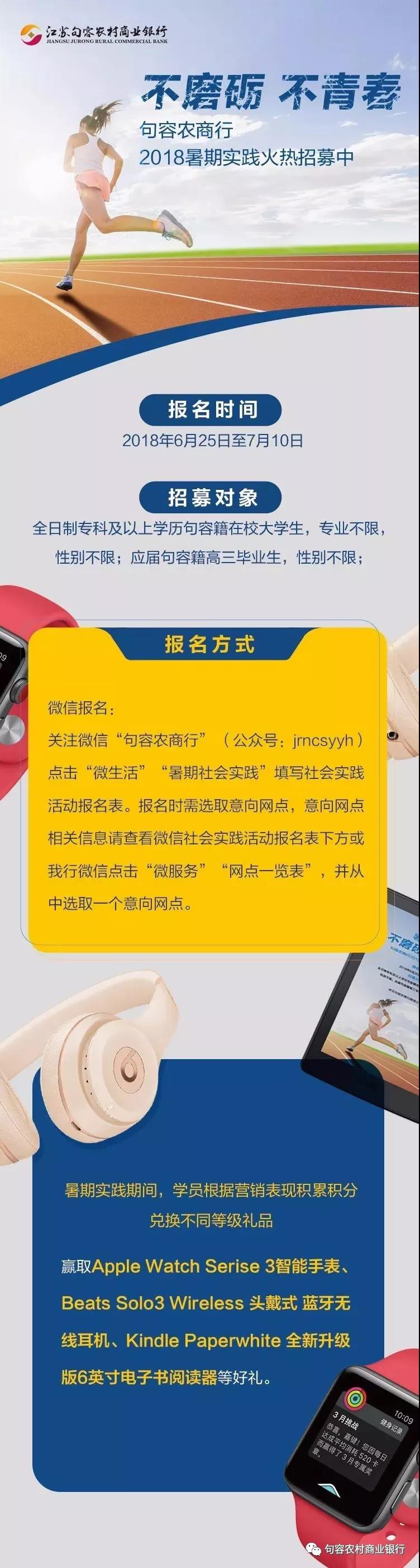2018年江蘇句容農商銀行暑期大學生社會實踐招募公告