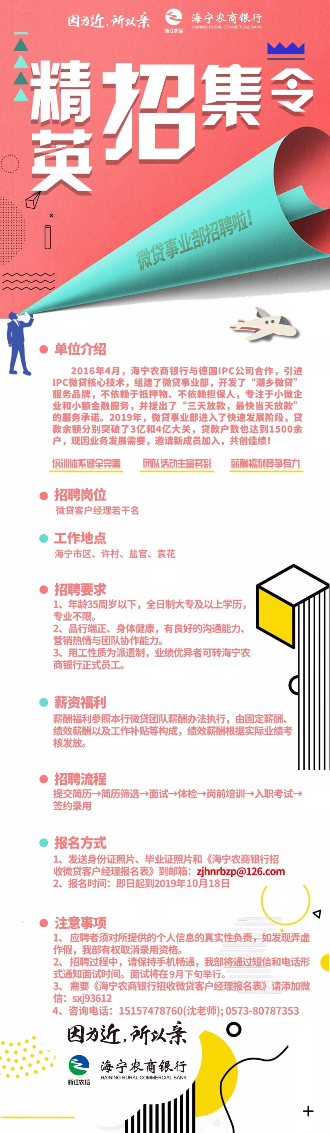 [浙江]2019年海寧農商銀行社會招聘啟事