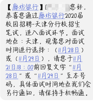 [天津]2020廊坊銀行天津分行秋季校園招聘面試通知