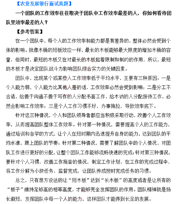 2017年中國農業發展銀行校園招聘面試真題