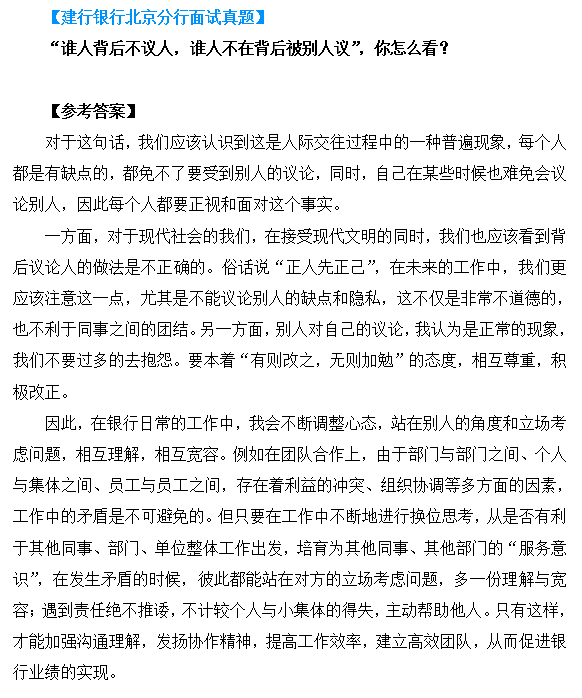 2017年中國建設銀行校園招聘面試真題