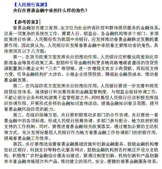 中國人民銀行招聘面試真題及答案(結(jié)構(gòu)化)