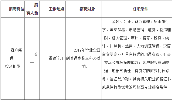 2019福建連江恒欣村鎮銀行秋季社會招聘公告