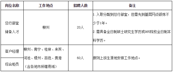 (一)具有大學本科及以上學歷(應聘縣域支行崗位的可放寬至全日制大專學歷),且能夠在2020年8月31日前取得相應的學歷、學位證書,身體健康,立志在柳州銀行長期發展;