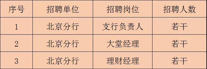 2.大堂經理、理財經理要求35周歲(含)以下,具備2年(含)以上商業銀行相關工作經驗,具備較好的客戶服務意識,較強的溝通能力和關系建立能力;