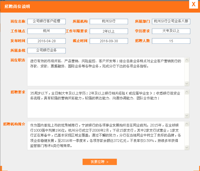 [浙江]2016年寧波銀行杭州分行招聘公司銀行客戶經(jīng)理啟事