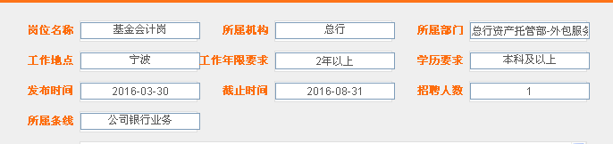 職位六:基金會計崗