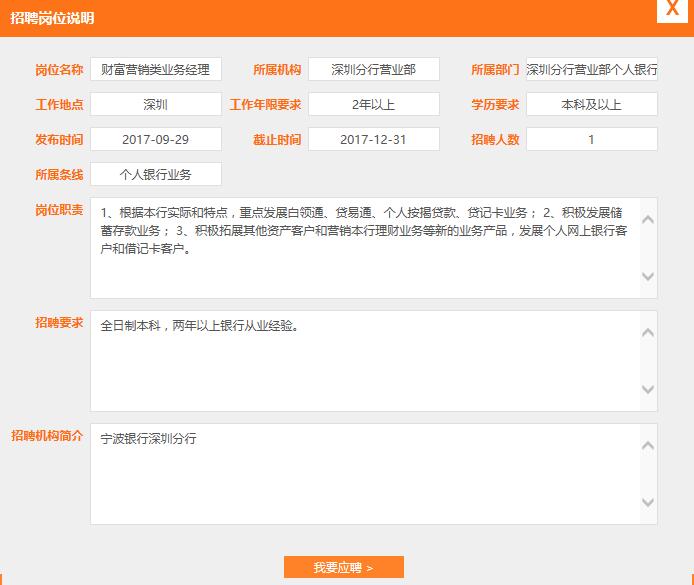 [廣東]2017寧波銀行深圳分行社會招聘啟事