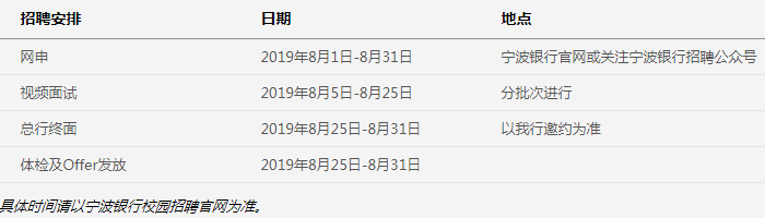 網(wǎng)上報名:應(yīng)聘者請于2020年8月31日24點前登錄寧波銀行校園招聘官網(wǎng)提交簡歷;