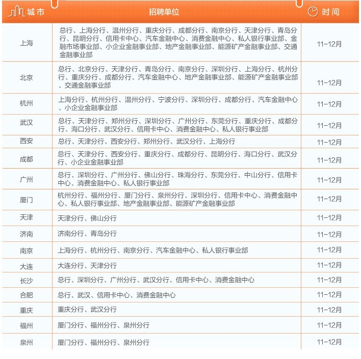 3.請注意各單位招聘城市不同,筆試城市可就近選擇,但面試城市務必根據每個招聘單位下注明的“招聘城市”選擇。