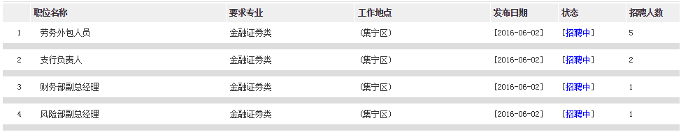 2016年內(nèi)蒙古烏蘭察布市集寧包商村鎮(zhèn)銀行招聘公告