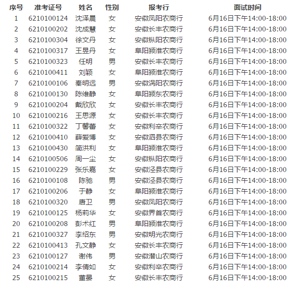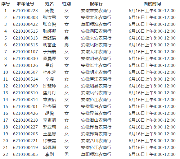 2016年安徽農村商業(yè)銀行系統(tǒng)法律專業(yè)面試人員名單
