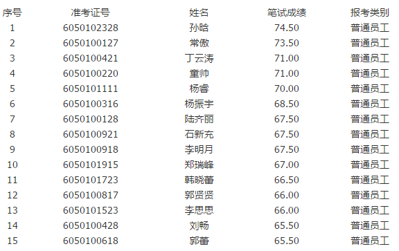 根據《五河農商銀行2016年員工招聘公告》,依據考生筆試成績從高分到低分的順序(考生可登錄安徽農金招聘系統自行查詢筆試成績,本行不再另行電話通知),按照1:1.5比例核定面試入圍人員名單,2016年我行面向社會招聘普通員工面試入圍分數線為"65.5分";法律、計算機專業報考入圍人員名單詳見安徽省聯社在招聘系統公告通知,F將相關事項通知如下: