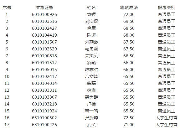 一、面試入圍人員:普通員工15人,大學生村官2人;具體名單見附件。