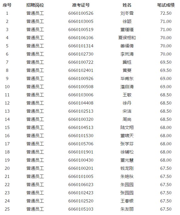 一、面試入圍人員:共25名(最后一名入圍面試人員筆試成績有6人并列,一同入圍面試),具體名單見附件。