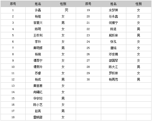 貴陽農商銀行2016年新員工入職培訓名單