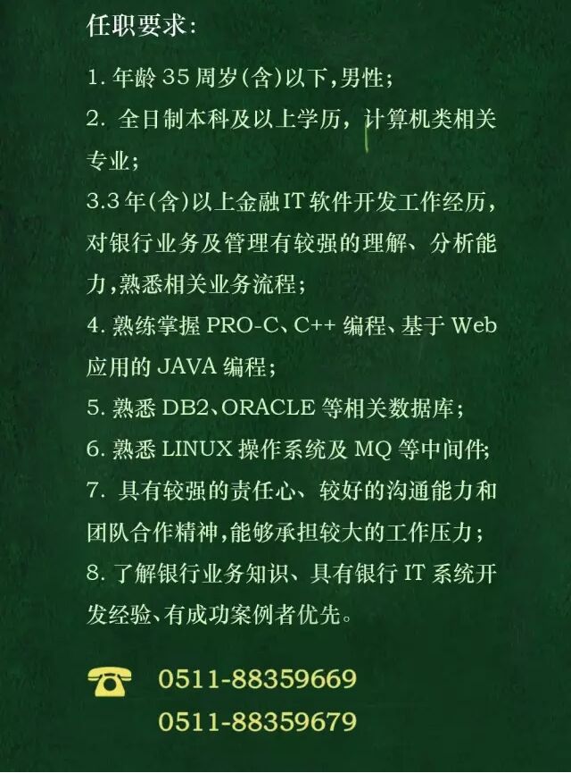 [江蘇]2016年揚中農商銀行招聘軟件開發員2人公告