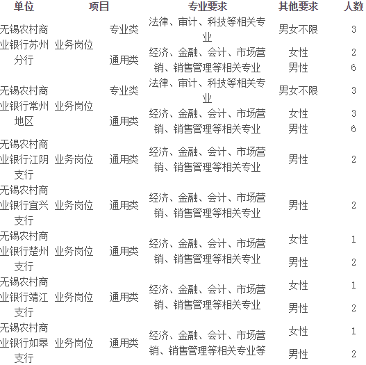 2017年無錫農(nóng)村商業(yè)銀行異地支行員工招聘簡(jiǎn)章