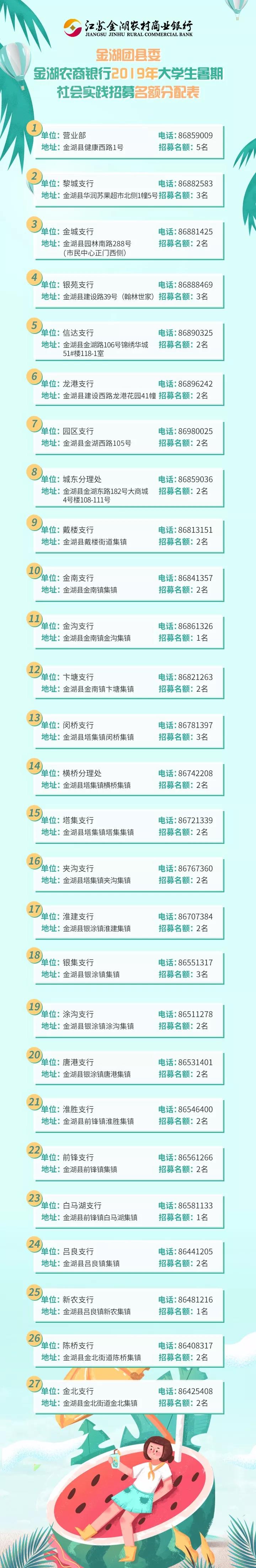 [江蘇]2019年金湖農商銀行暑期大學生社會實踐招募公告