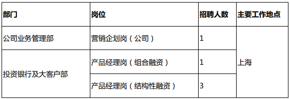 應聘條件:35 周歲以下;經濟、金融、外貿、管理等專業全日制本科及以上學歷;3年以上國有商業銀行或股份制商業銀行產品部門相關崗位工作經驗;具有較強的溝通能力、良好的書面表達能力和清晰的邏輯思維能力;英語流利。