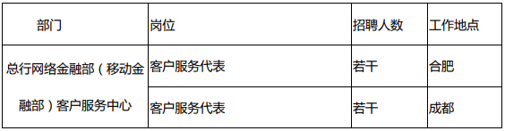2019年浦發銀行總行網絡金融部(移動金融部)客戶服務中心(合肥、成都)招聘啟事