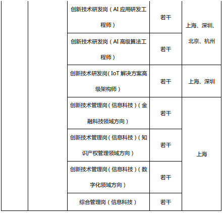 三、招聘崗位列表 (工作地點在上海的崗位,主要面向上海地區招聘)