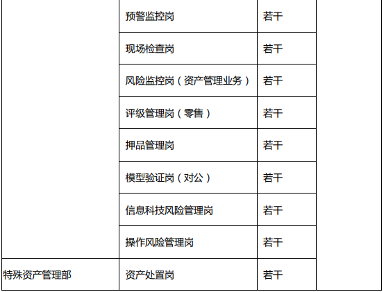 應聘條件:40 周歲以下;全日制本科及以上學歷;3 年以上工作經驗,具有商業銀行總分行層級的公司、投資銀行、金融機構、金融市場業務的市場營銷、審查審批、風險管理、合規等工作經歷,或有知名會計師、律師事務所工作經驗;熟悉商業銀行授信產品制度、業務流程、行內風險管理政策及監管規定;具有一定的信用風險分析判斷能力和風險識別能力;具有較強的文字綜合能力和語言溝通能力;持有注冊會計師、CFA 證書者優先。