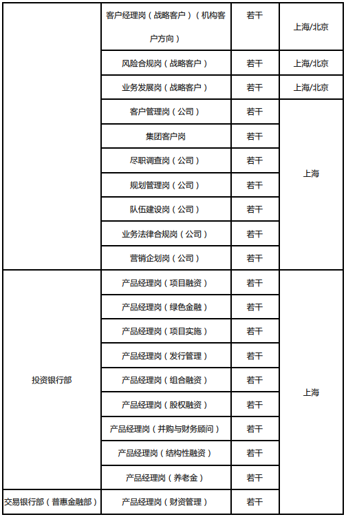 2019年浦發銀行總行公司業務板塊相關部門招聘啟事(8.14)