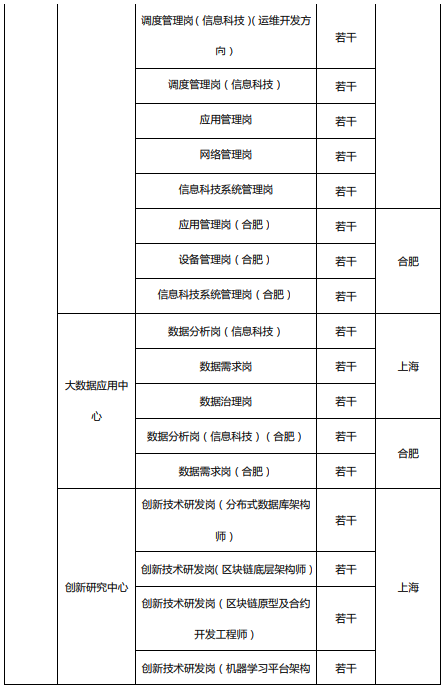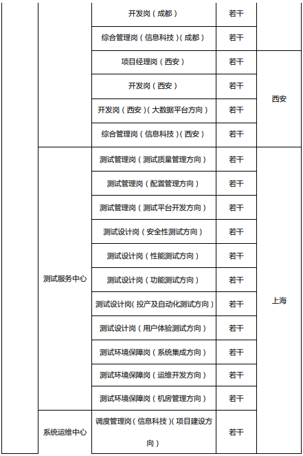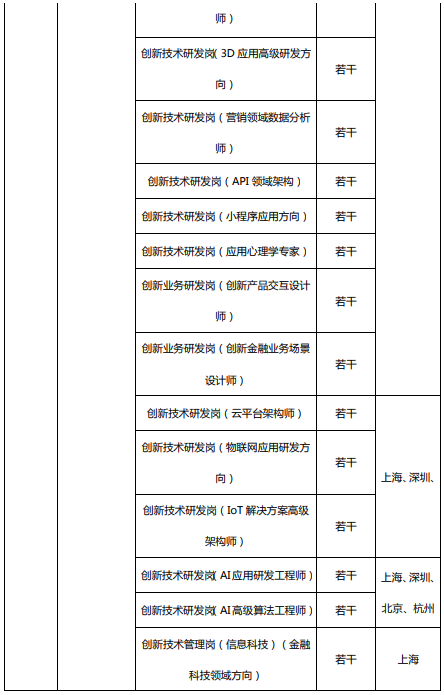 三、招聘崗位列表 (工作地點在上海的崗位,主要面向上海地區招聘)