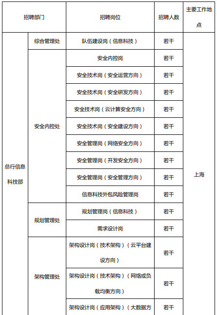2019浦發銀行總行信息科技部招聘啟事(10.24)